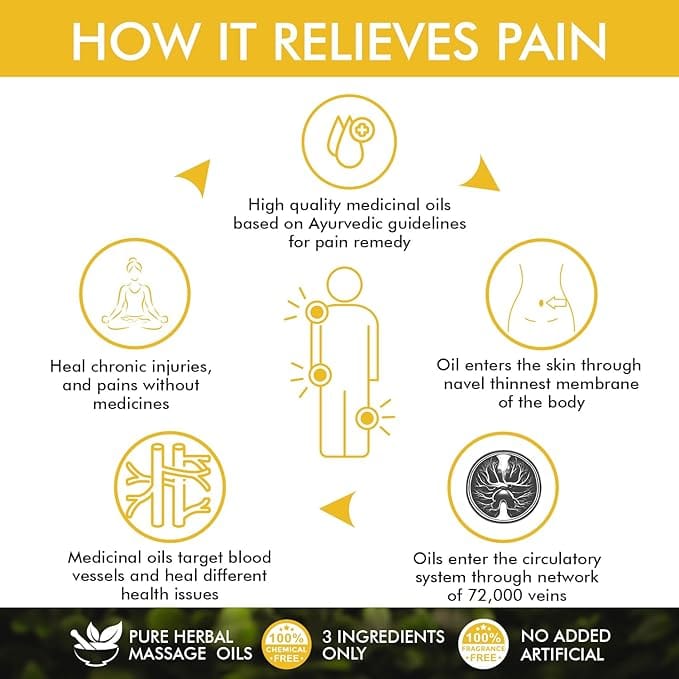 Pure and Convenient: Made with natural pain-relieving ingredients like ginger, olive, and castor oil, free from chemicals, and packed in a travel-friendly bottle.